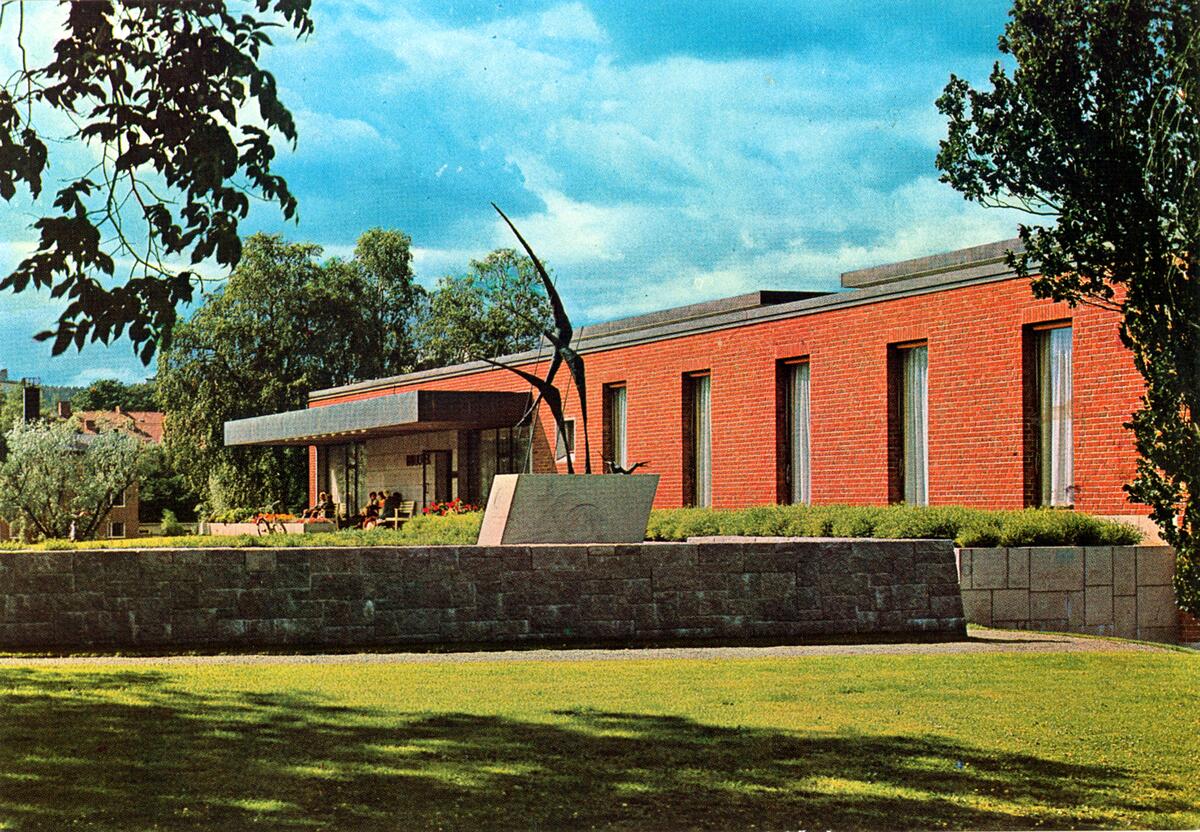 Stadsbiblioteket, ritat av Ark. N. Lönnroth och Lubbe Nordströms-monument av skulptören B. Helleberg.