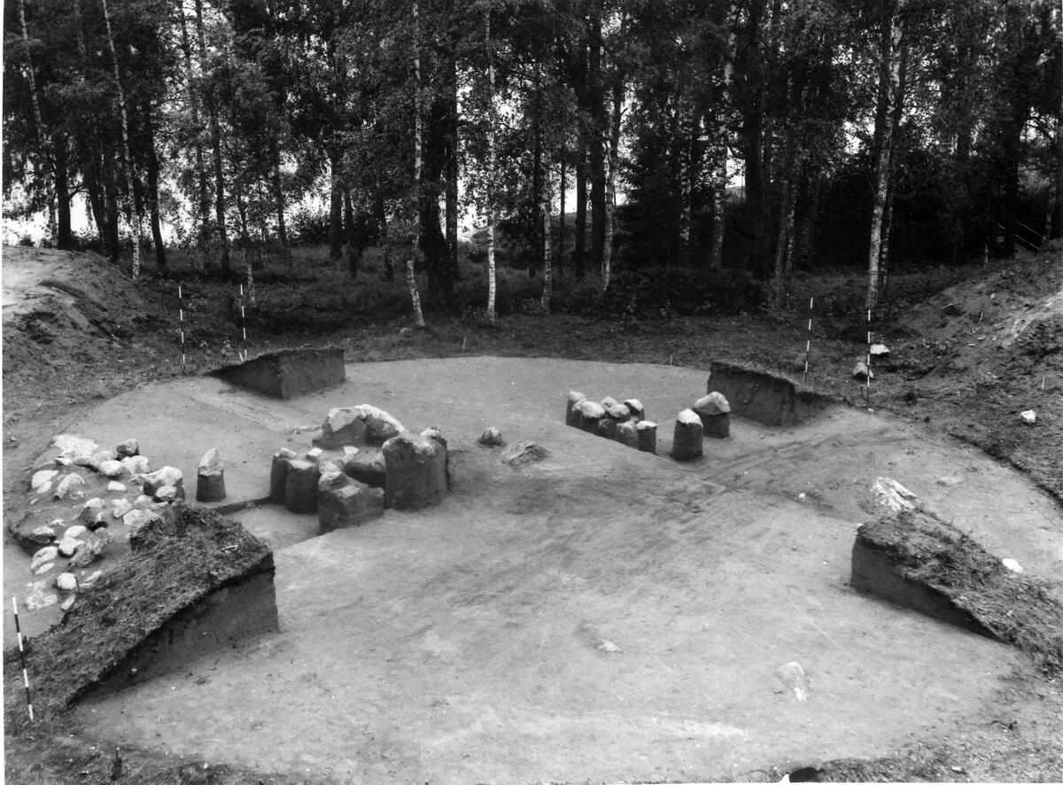 Titel: Gravfältet vid Holm hög nr 9, från NO. Färdigutgrävd.