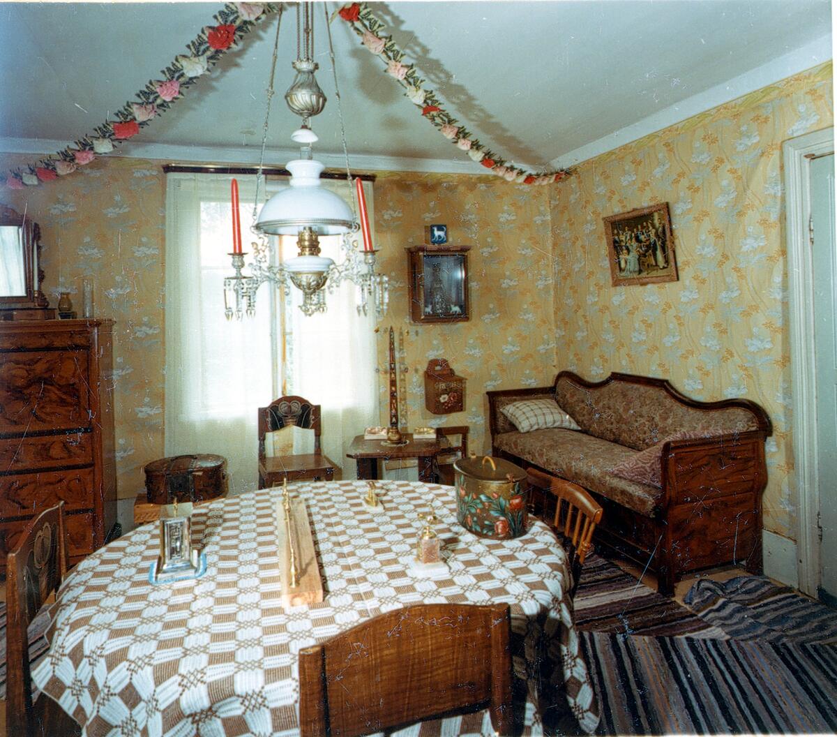 Titel: Interiör av hemmansägare Ivar Edins manbyggnad, uppförd 1852. Södra kammaren sedd mot väster