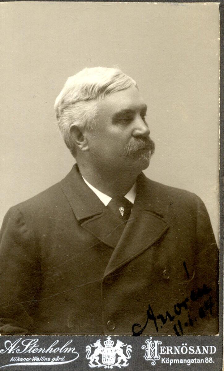 Kapten A. Norén på Strömkarlen vid 54 år 11-6-04. A. Stenholm Nicanor Wallins gård Köpmangatan 88 Hernösand.
