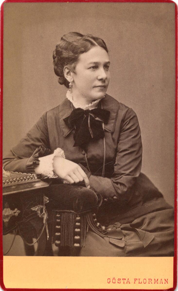 Fru Mina Hägg född 1841, död 1920, född Tjernberg. Hernösand. Gösta Florman Stockholm Regeringsgatan 28 A.