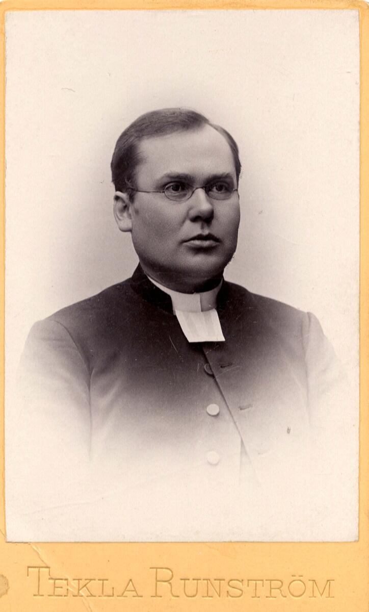 Kyrkoherde Anton Lundström Arnäs. Född 5/11 1856. Död 9/2 1906. Tekla Runström Fotografi Atelier Köpmangatan 189 Hernösand snedt emot Bagare Hommerberg.