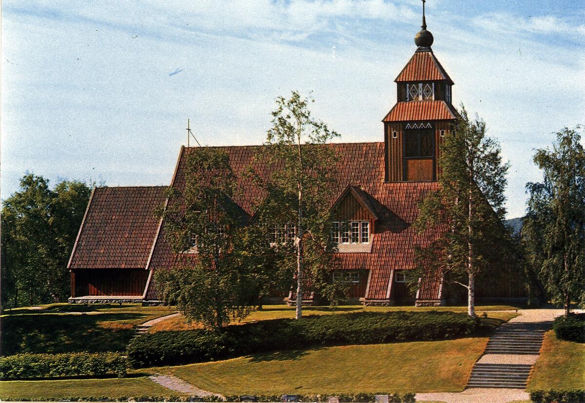 Titel: Solbergs kyrka. Arkitekt Otar Hökerberg, Stockholm. Nationalromantisk stil. Byggd i trä med högt och brant sadeltak med strävor mellan fönstren ända ned till sockeln. Taket är täckt med rött tegel och de panelklädda väggarna är tjärade. Ett mindre torn finns på takets västra del. Invändigt består väggarna av synligt timmer, takbjälkarna är synliga, bänkarna är blåmålade och predikstolen målad i grönblått. År 1952 gjordes en restaurering, då en ny snidad altaruppsats tillkom.