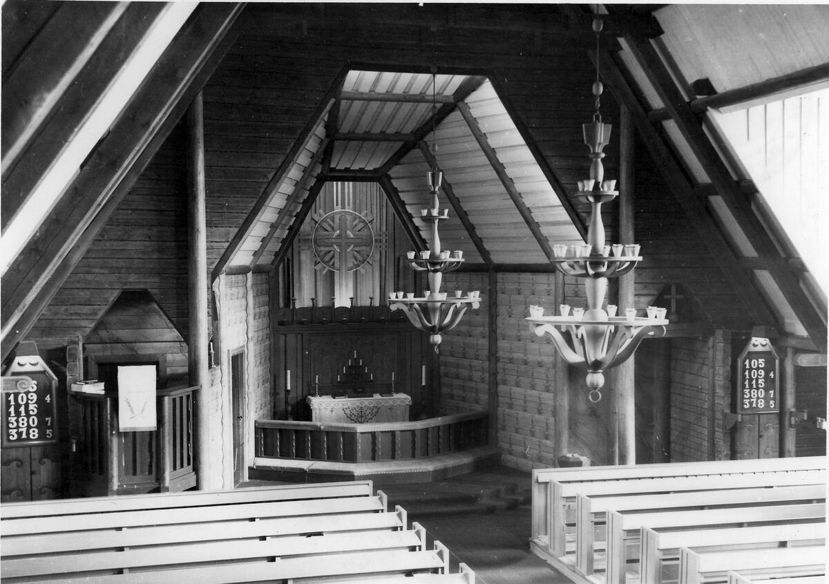 Solbergs kyrka. Arkitekt Otar Hökerberg, Stockholm. Nationalromantisk stil. Byggd i trä med högt och brant sadeltak med strävor mellan fönstren ända ned till sockeln. Taket är täckt med rött tegel och de panelklädda väggarna är tjärade. Ett mindre torn finns på takets västra del. Invändigt består väggarna av synligt timmer, takbjälkarna är synliga, bänkarna är blåmålade och predikstolen målad i grönblått. År 1952 gjordes en restaurering, då en ny snidad altaruppsats tillkom.