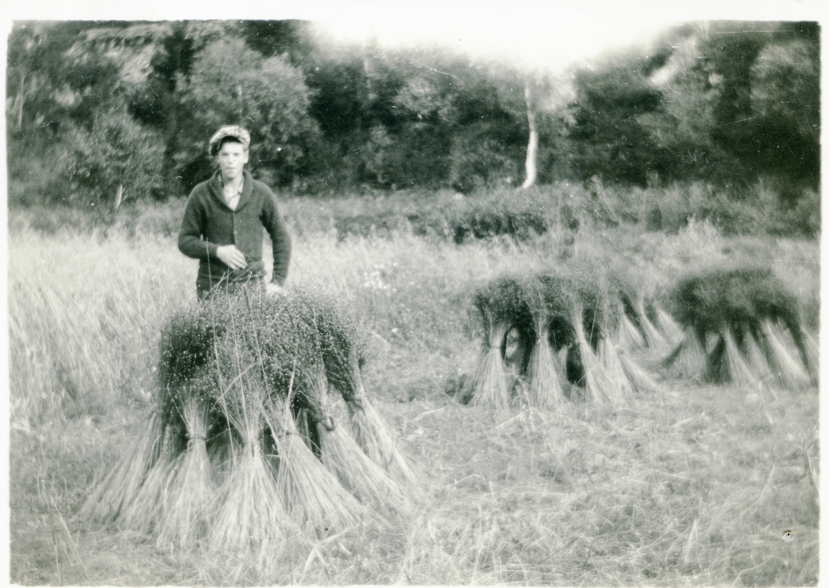 Hemslöjden. Pojke vid linkärvar på åker.