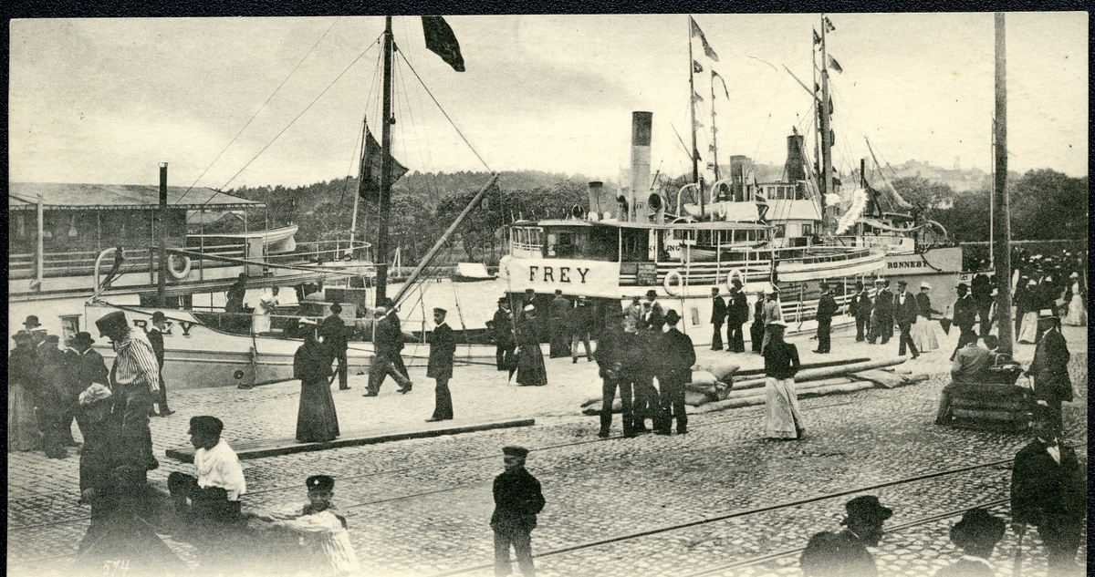 Folkmarknad. Med fartyg i hamnen. C:a 1900.