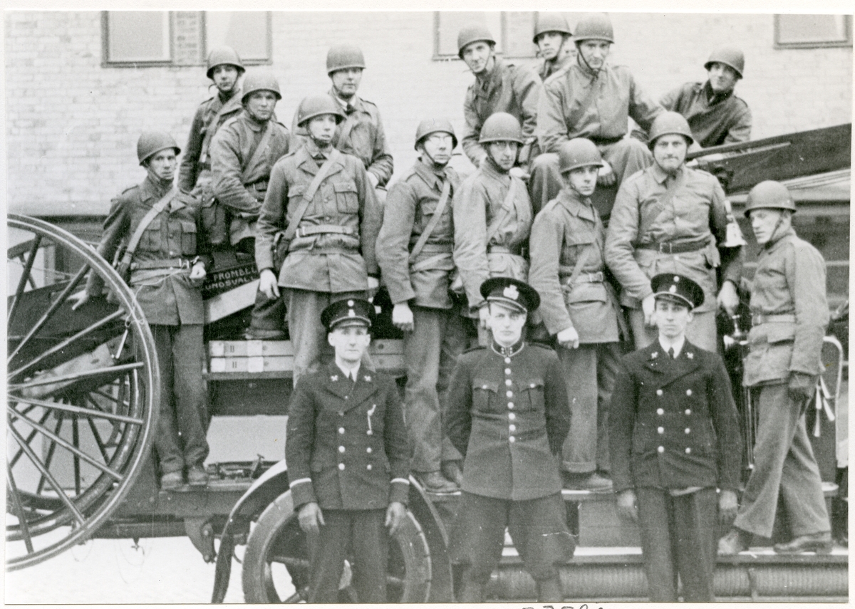 Personal utanför brandstationen vid Kopparbergsvägen 41. 1942.