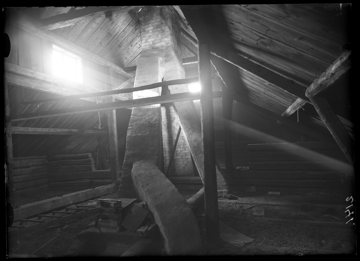 Titel: Skorstensmur på Hallstahammars herrgård, Hallstahammar. Före flytten till Vallby friluftsmuseum, Västerås.