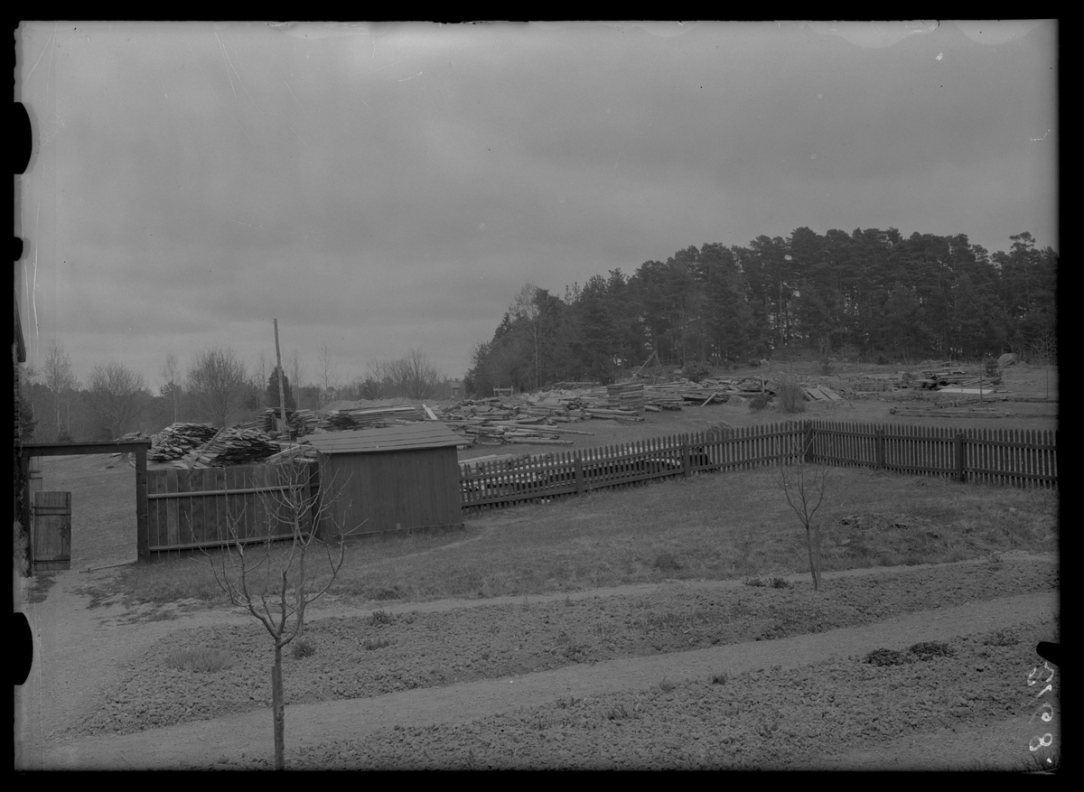 Platsen för Hallstahammars herrgård, med timret, Vallby friluftsmuseum i Västerås.