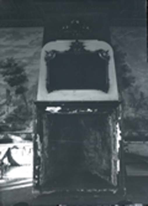 Interiör stora salen, eldstad, på Hallstahammars herrgård i Hallstahammar. Före flytten till Vallby friluftsmuseum i Västerås.