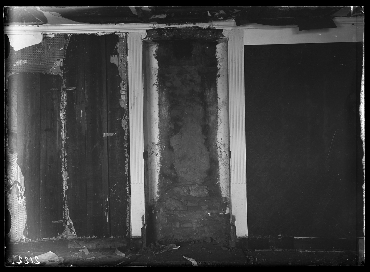 Interiör infattning till spis i matsalen på Hallstahammars herrgård, Hallstahammar. Före flytten till Vallby friluftsmuseum i Västerås.