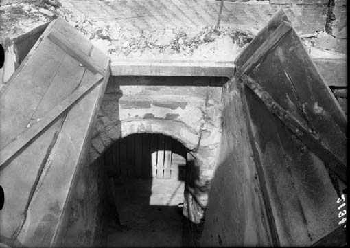 Källare, sedd uppifrån, på Hallstahammars herrgård, Hallstahammar. Före flytten till Vallby friluftsmuseum i Västerås.