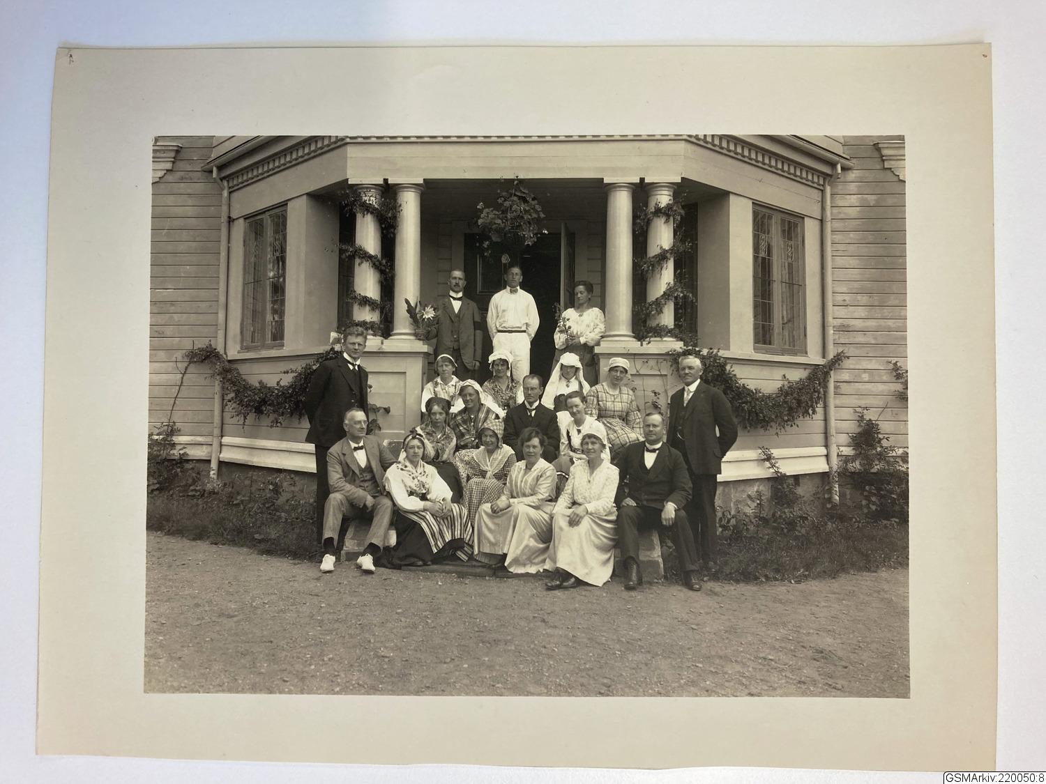 Till den oöverträffliga fd sekreteraren "Backas" med tack för vad du varit, är och förbliver. Familjen G Nilsson. Salta tårar. 1920