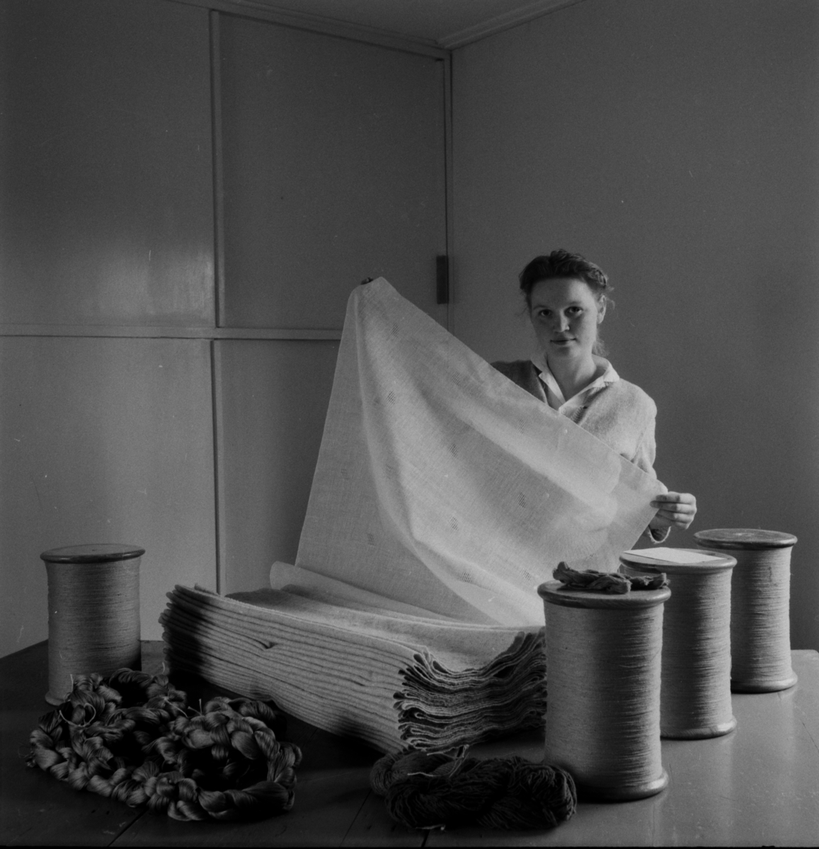 Titel: Textilkonstnärinna fru Alice Lund, Borlänge, Dala-Floda, textiltryckare