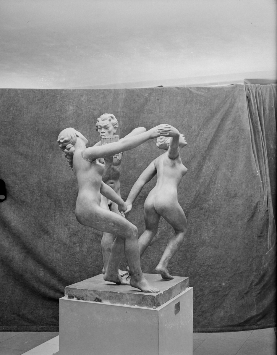 Titel: Fru Greta Carlman, skulptör Conrad Carlmans grupp ”Pan spelen” i Stockholms konserthus