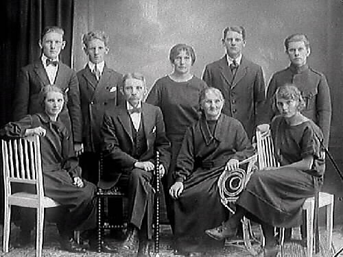 Familjen Pålsson med en äldre kvinna, sannolikt far- eller mormodern.