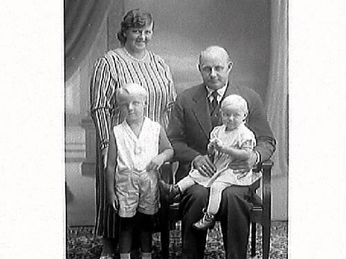 Familjebild. Ingenjör Nils Johansson med fru Vivi Johansson och barnen Lars Johansson samt Ville Johansson.