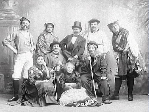 Mathilda Ranch med vänner utklädda till maskeradbal 1897. Elof Ernwald sannolikt längst till höger. (Se även bild MR2_685)