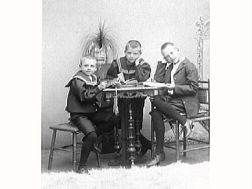 Sönerna till Mathildas äldsta syster Maria. Robert Bäckström, Charles Bäckström och William Bäckström. Förmodligen ska det se ut som att de sitter och studerar.