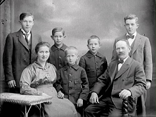 Familjebild. Byggmästare Johan Eliasson med fru och fem söner: Sven Eliasson, Georg Eliasson, Bror Eliasson, Rudolf Eliasson, Gustav Eliasson,