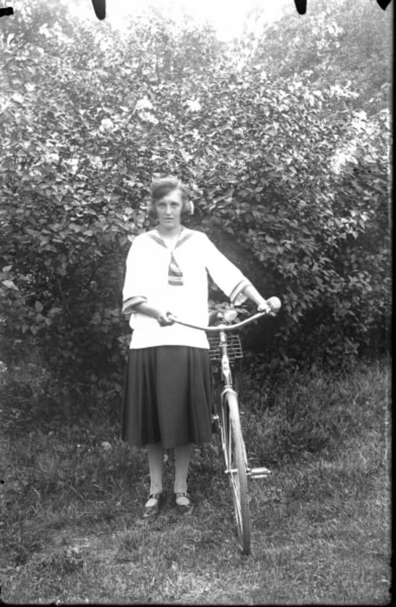 Kvinnoporträtt, flickporträtt, ung kvinna med cykel