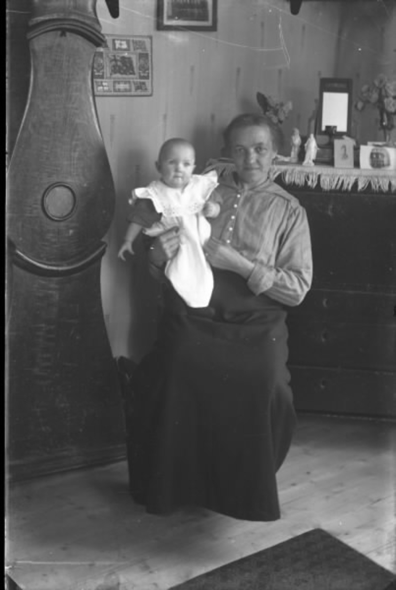 En kvinna (mor?) med spädbarn i inomhusmiljö