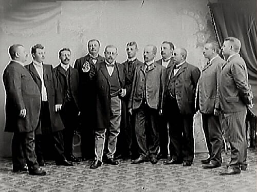 Troligen en manskör med dirigenten i mitten. Fotograferat innan Björkström etablerade sig i Varberg.