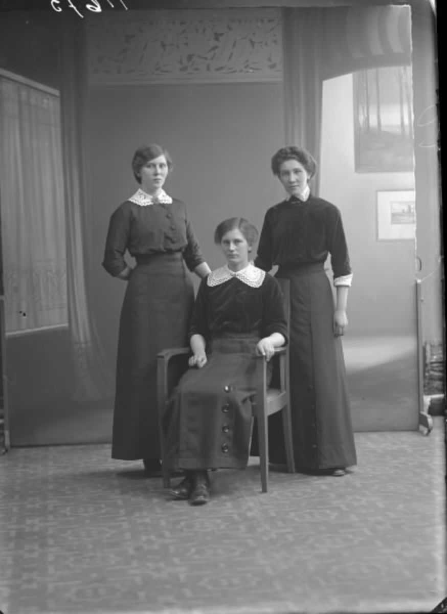 Kvinnoporträtt, gruppbild, tre kvinnor,ateljéfoto