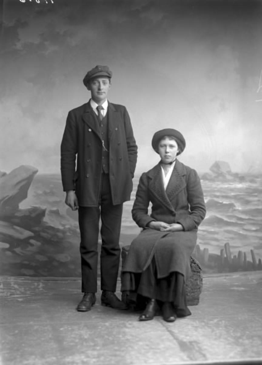 Gruppbild, parporträtt, syskon? hattar, ateljéfoto. Beställare är förmodligen Anna Bentsson