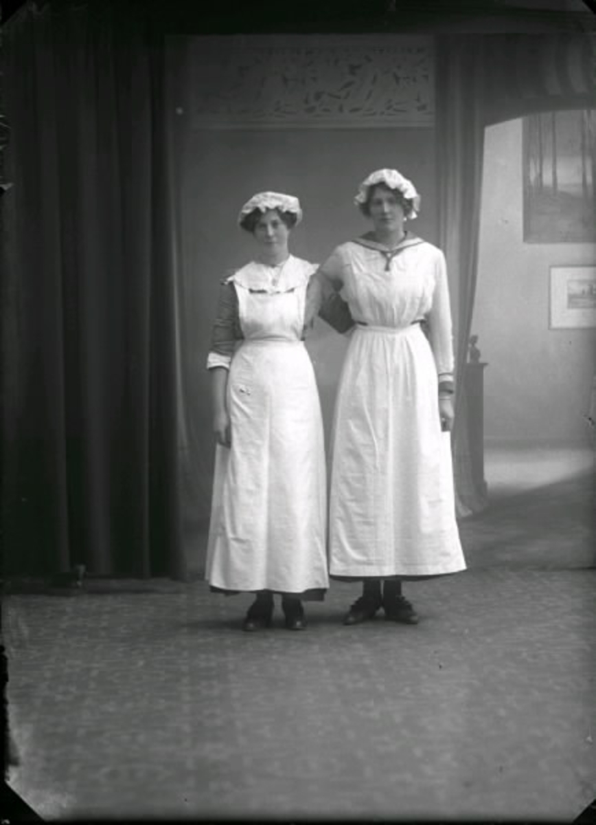 Kvinnoporträtt. Ateljébild av två hembiträden. Personalgrupp.