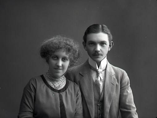 Parporträtt, kvinna och man i bröstbild. Ateljébild. Beställare: Gustaf Franzén.
