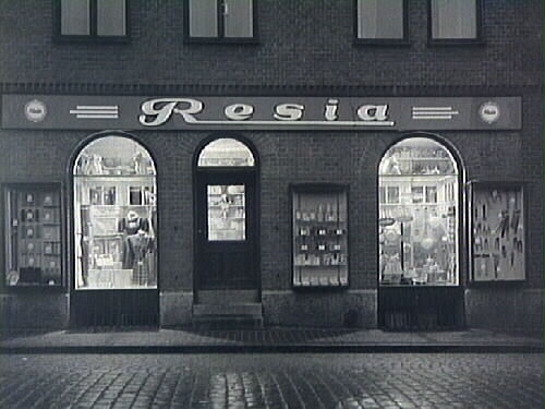 Skyltfönstren kvällstid till Tvålhuset Resia i Varberg utmed Kyrkogatan, (kv Apotekaren 9).
