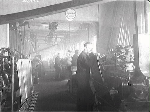 Cykelindustri. Arbetare i hallen med automatsvarv av nav-, styr och vevlager. (Se även bildnr GB2_3378)
