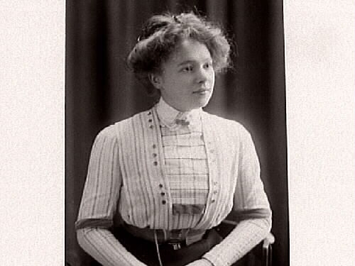 Kvinnoporträtt. Sittande ung kvinna med puffig frisyr. (Se även bildnr MR2_1142)