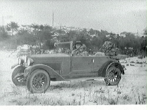 Fotografier av en öppen bil som står på ett snöigt fält med berg i bakgrunden, okänt var. Passagerarna är bokstavligen ordentligt påpälsade; två män på den ena bilden och på den andra även en kvinna. (nr 3 zoomar in på personerna) Fallenius på Stora Nygatan i Göteborg beställde bilderna och är troligen chauffören.