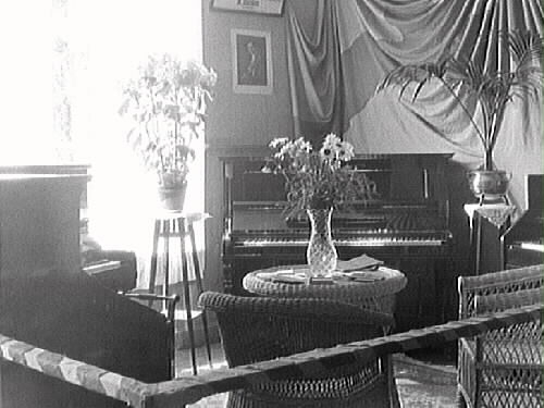 Bror Dahlins monter med flera pianon på Hantverksmässan i Gamlebyskolan, Varberg 1927.