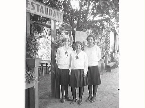 Servitriser vid restaurangen på Hantverksutställningen på Gamlebyskolans gård i Varberg 1927.