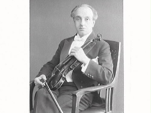Kapellmästare Forgneri sitter med fiol och stråke i en karmstol. (Se bildnr GB2_3098-3101)