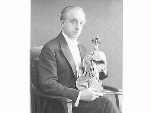 Kapellmästare Forgneri med fiol och stråke i en karmstol. (Se bildnr GB2_3098-3101)