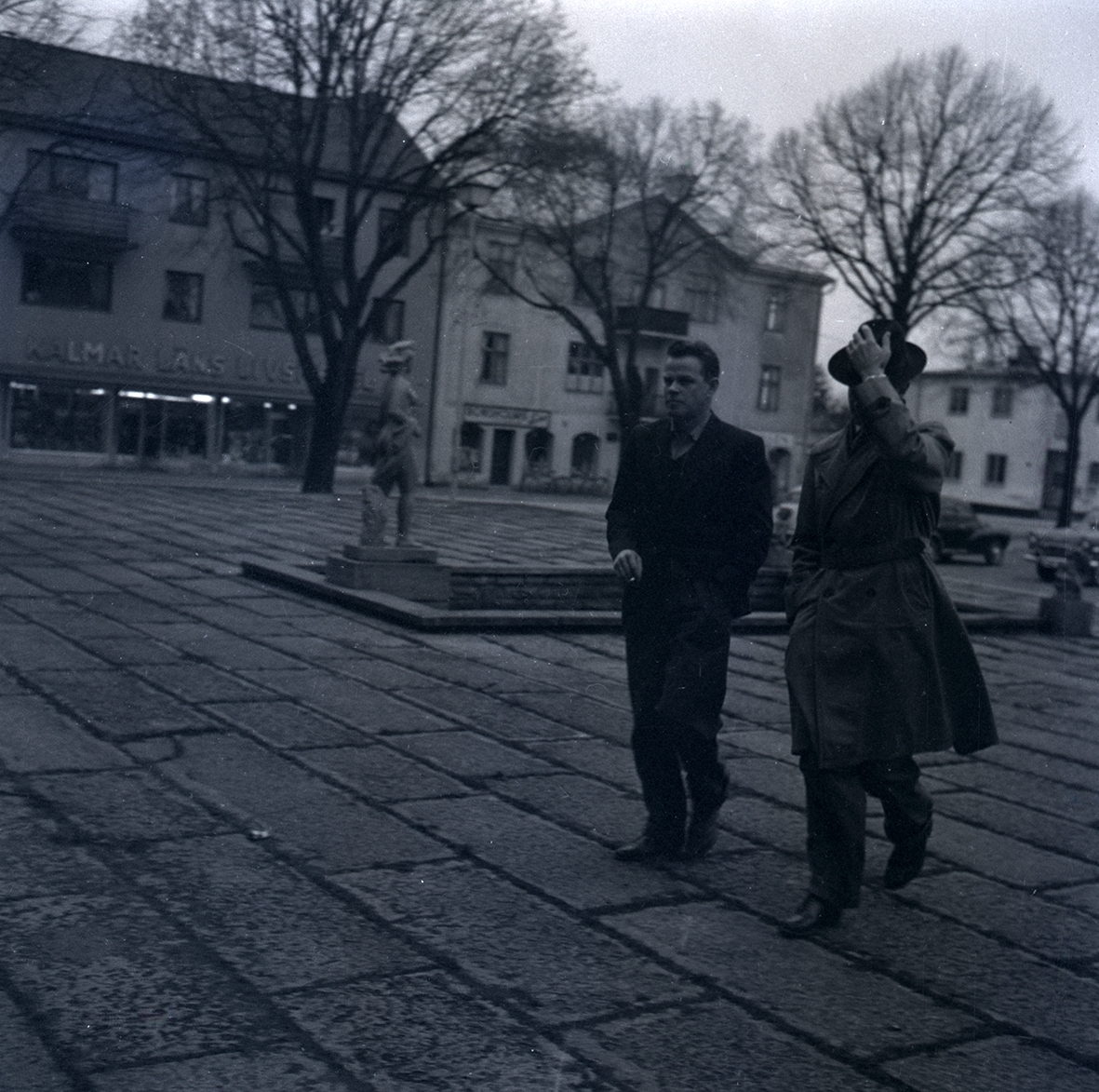 Två män på torget i Borgholm. Bild tagen i samband med ölandsbränderna. Göran Johansson blev i tingsrätten dömd som skyldig men friades i hovrätten.