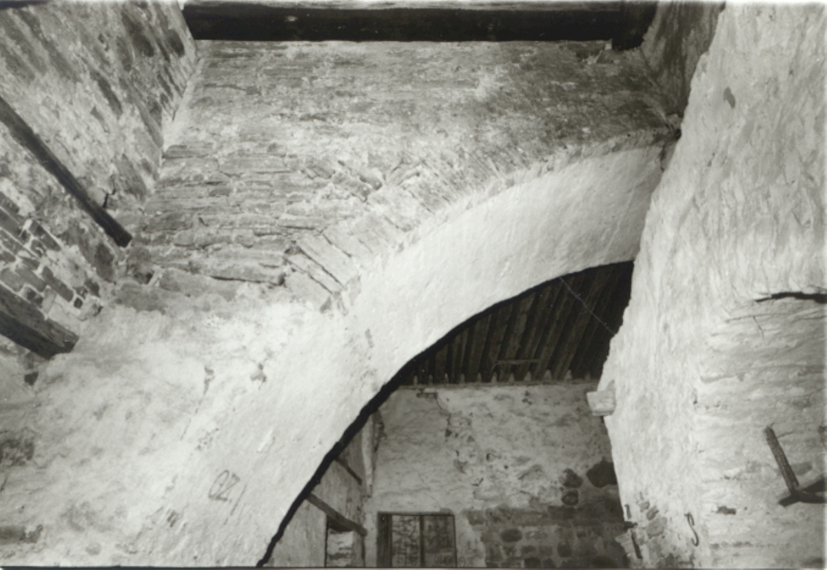 Bottenvåningen, Östra längan rum 43 - Kungsköket i Kalmar slott. Norra murens övre del, sedd genom mellanväggens valv.