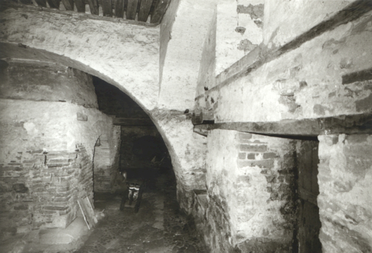 Bottenvåningen, östra längan rum 43 - Kungsköket i Kalmar slott. Spisen, östra väggen (från trappan i Norra muren).