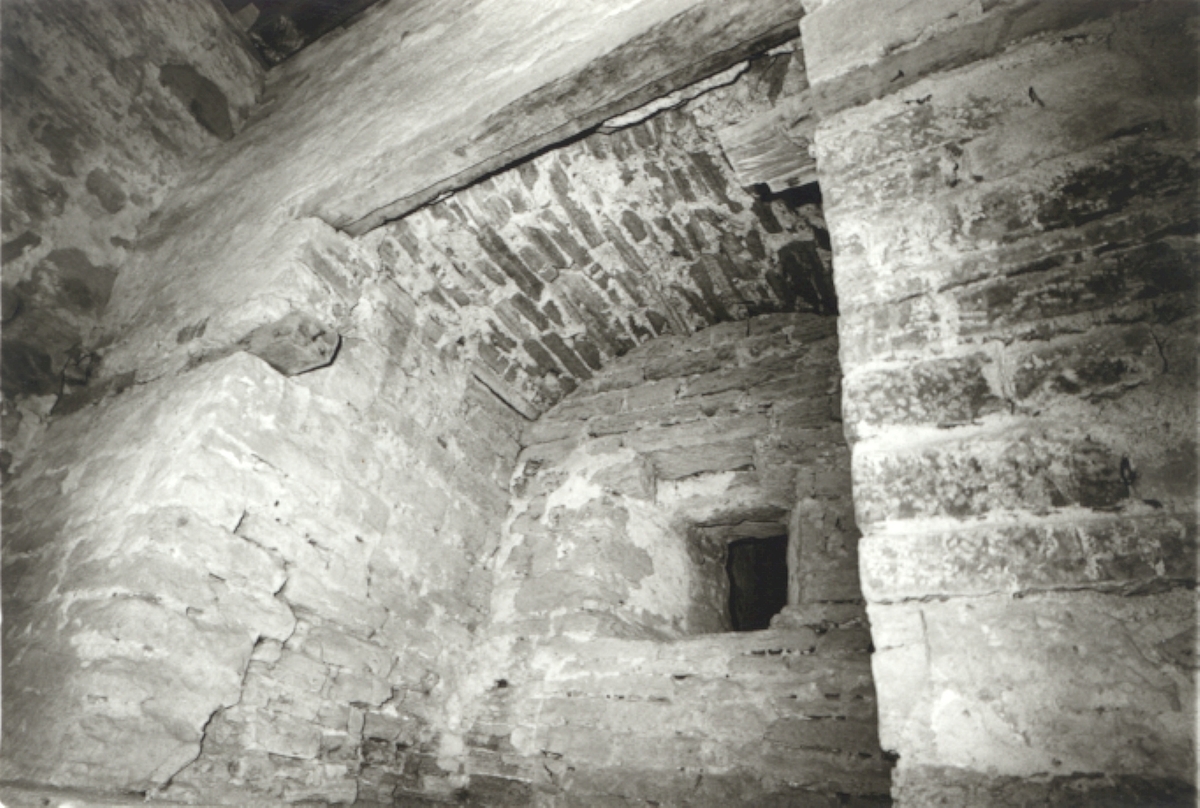 Bottenvåningen, östra längan rum 43 - Kungsköket i Kalmar slott. Östra väggens norra del. Igenmurad glugg.