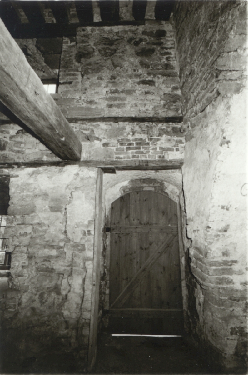 Kalmar slott, bottenvåningen, östra längan rum 43 - Kungsköket. Västra väggen, mittpartiet med den sydliga utgången till borggården.