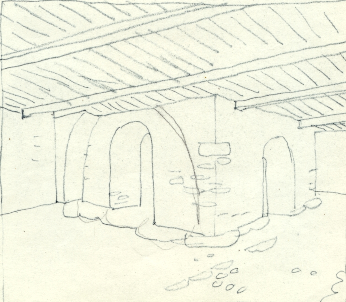 Kalmar slott, skiss av bottenvåningen, östra längan rum 43 - Kungsköket.