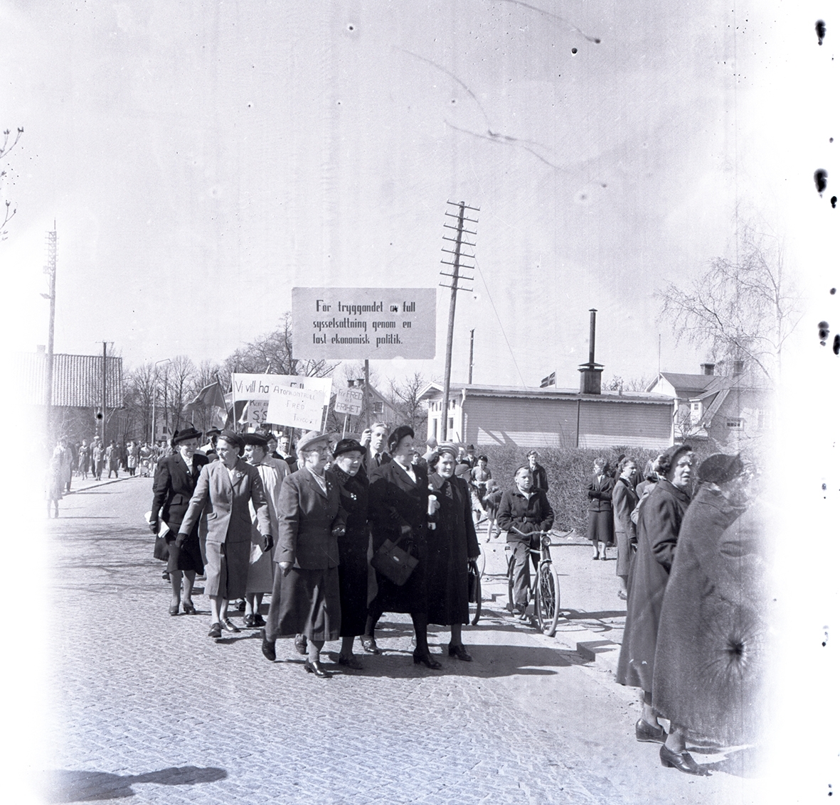 Första majfirande i Borgholm. Blåsorkester med kör underhåller framför stadshuset.