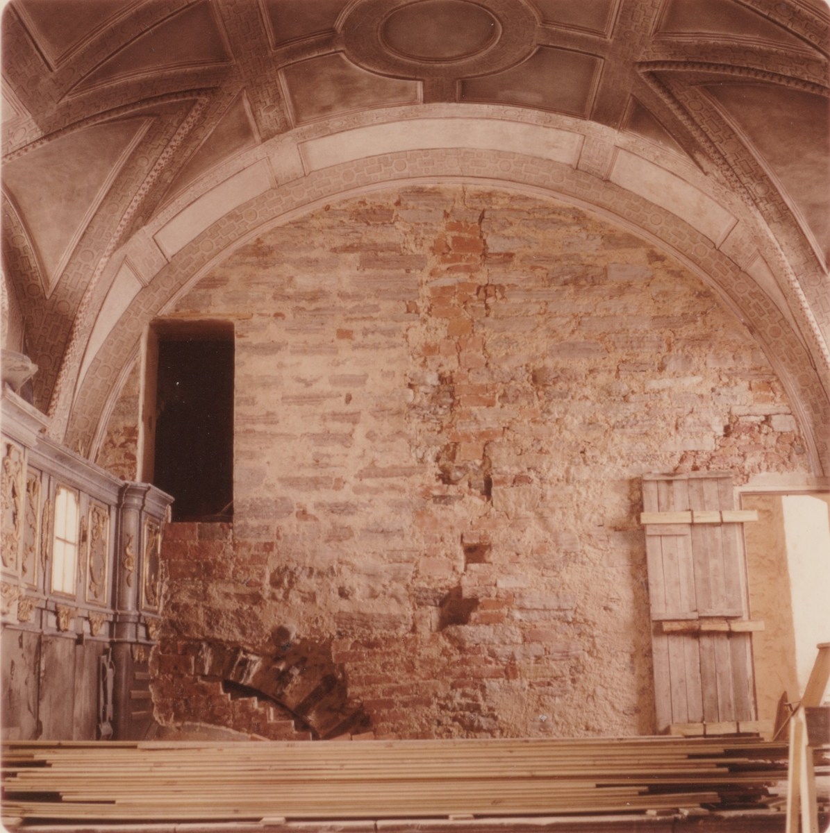 Korväggen i Slottskyrkan efter blästring.