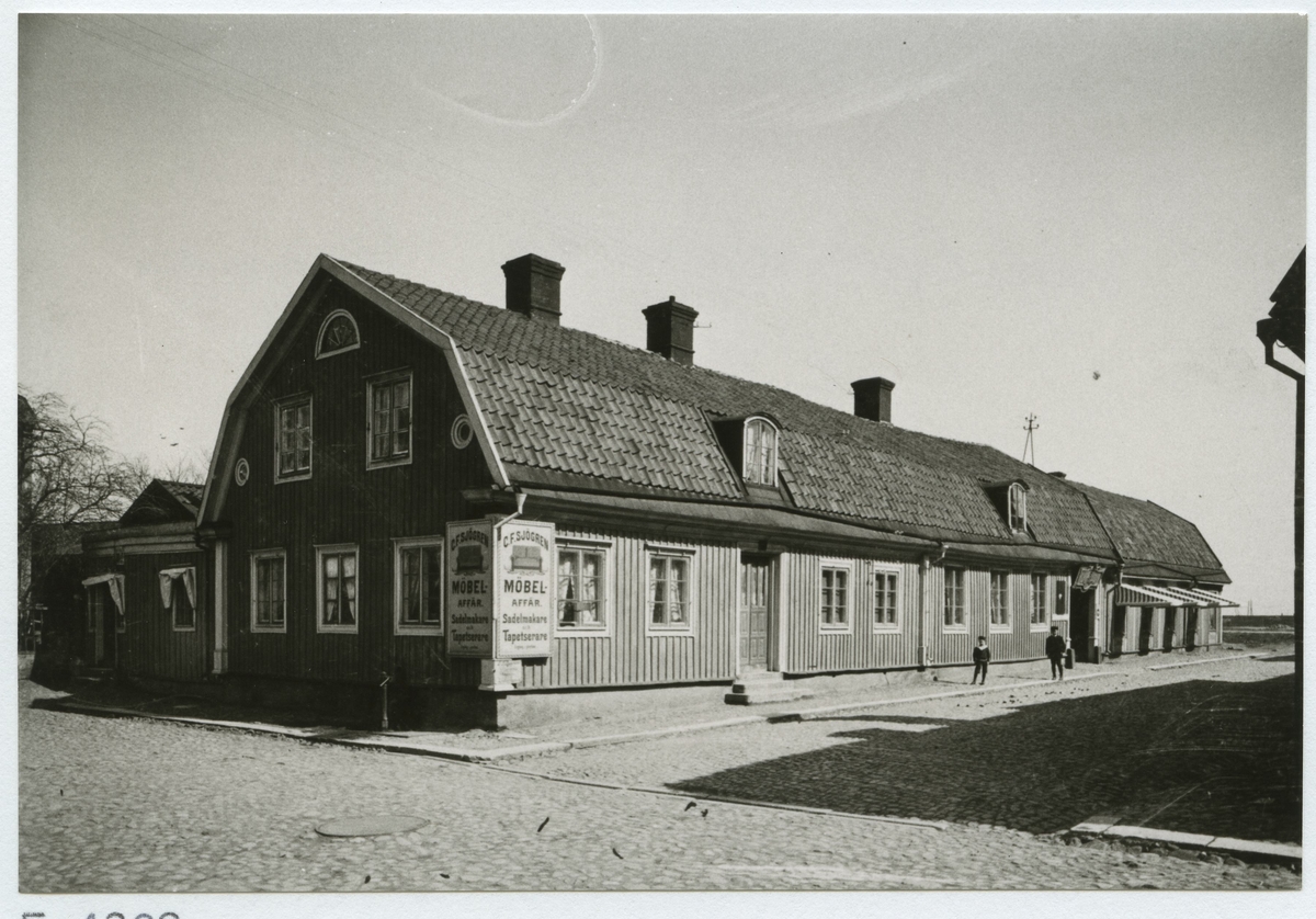 Sahlströmska huset i kvarter muren. En butiksbyggnad. Bild tagen 1908.