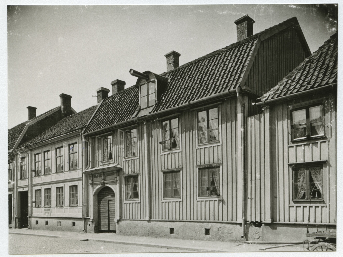 En bostad med träfasad. Taket har en takkupa med hissbom. Motivet är ifrån 1908.