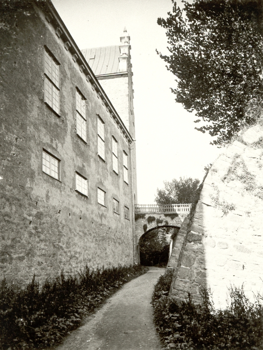 En promenadväg med brovalv utmed slottsvallen. Bild tagen 1908.